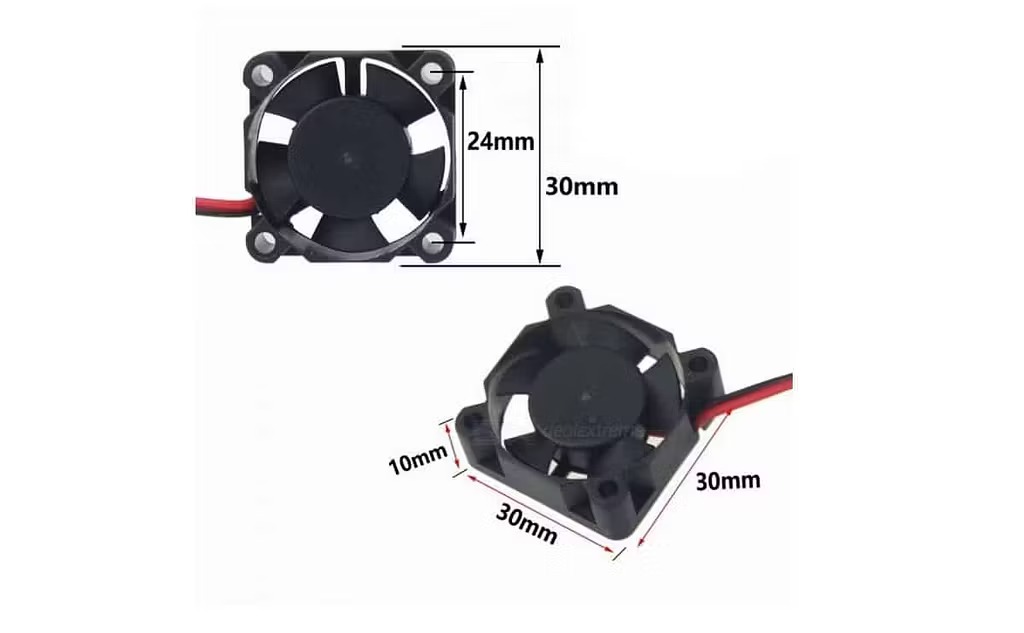 This fan is widely used in 3D printer hotend cooling, part cooling, electronic enclosure ventilation, relay units, and various compact devices. Its durable plastic body, low-noise performance, and universal 2-pin interface make the Cooling Fan 3010 24V easy to integrate into most 3D printer models.