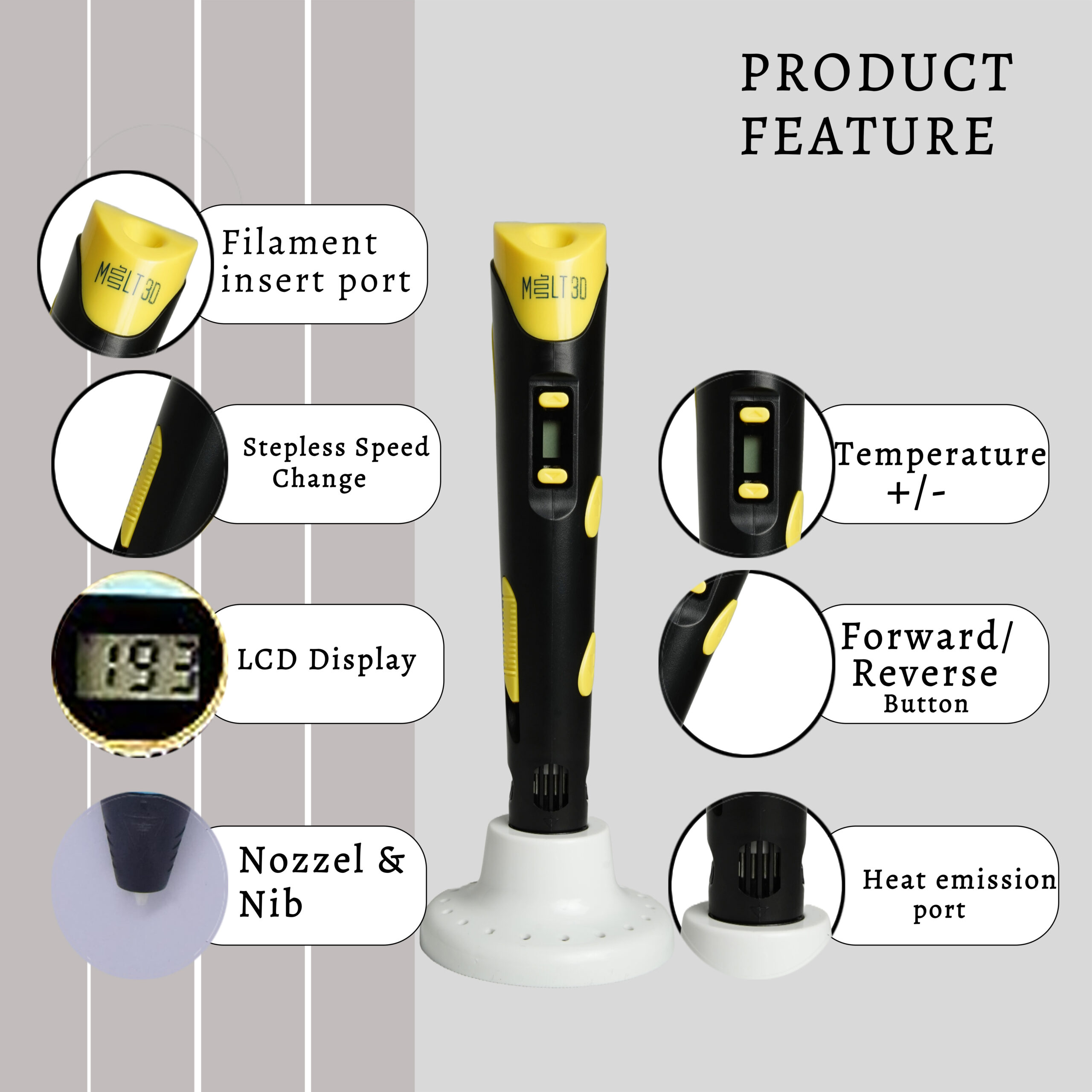 Melt 3D Doodler Smart 3D Pen | With Power Adapter | In Black & Yellow Color | Perfect for Kids & Adults