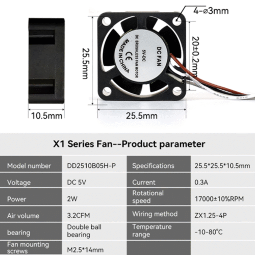 ₹399.00 Incl. of all taxesBambu Lab 2510 Double Ball Hotend Cooling Fan – X1 Series 3D Printer